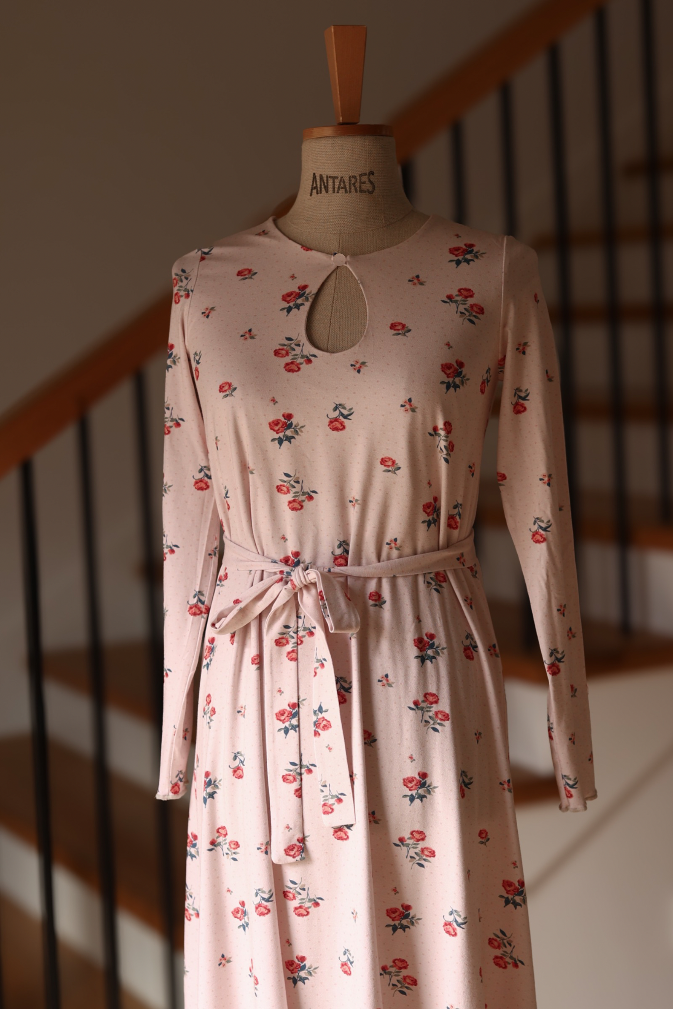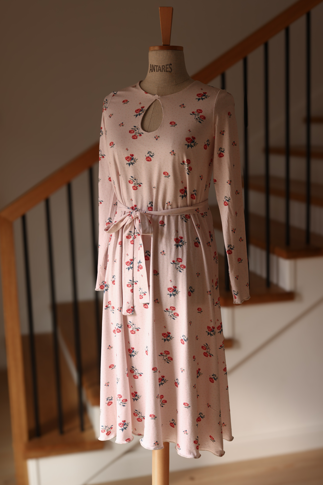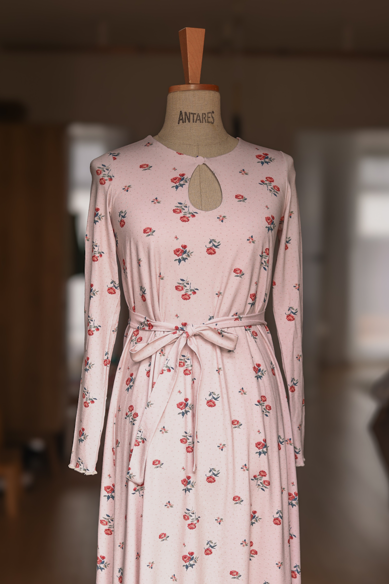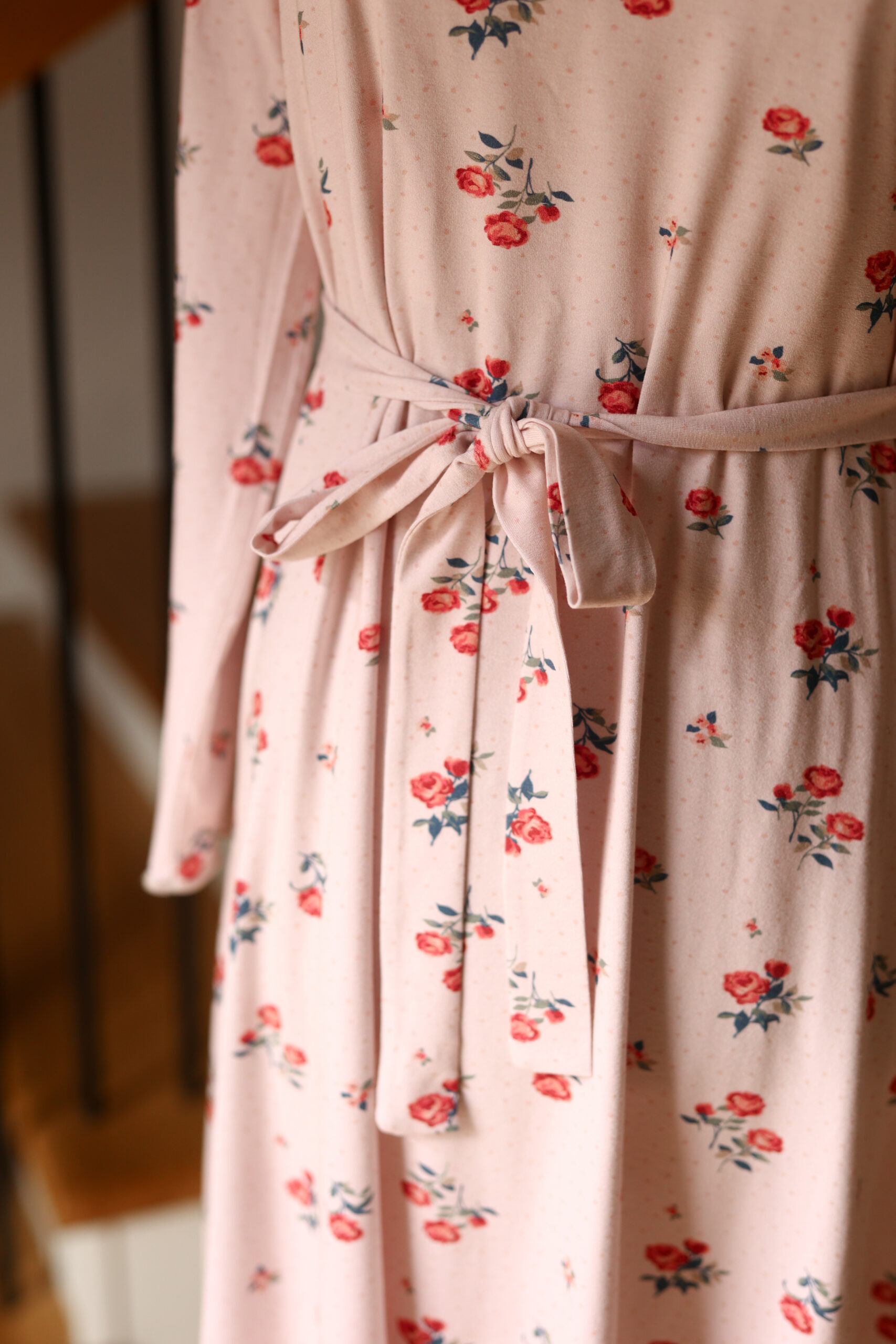 Dzianinowa Sukienka z Łezką Claire – Mlecznoróżowa w Różyczki