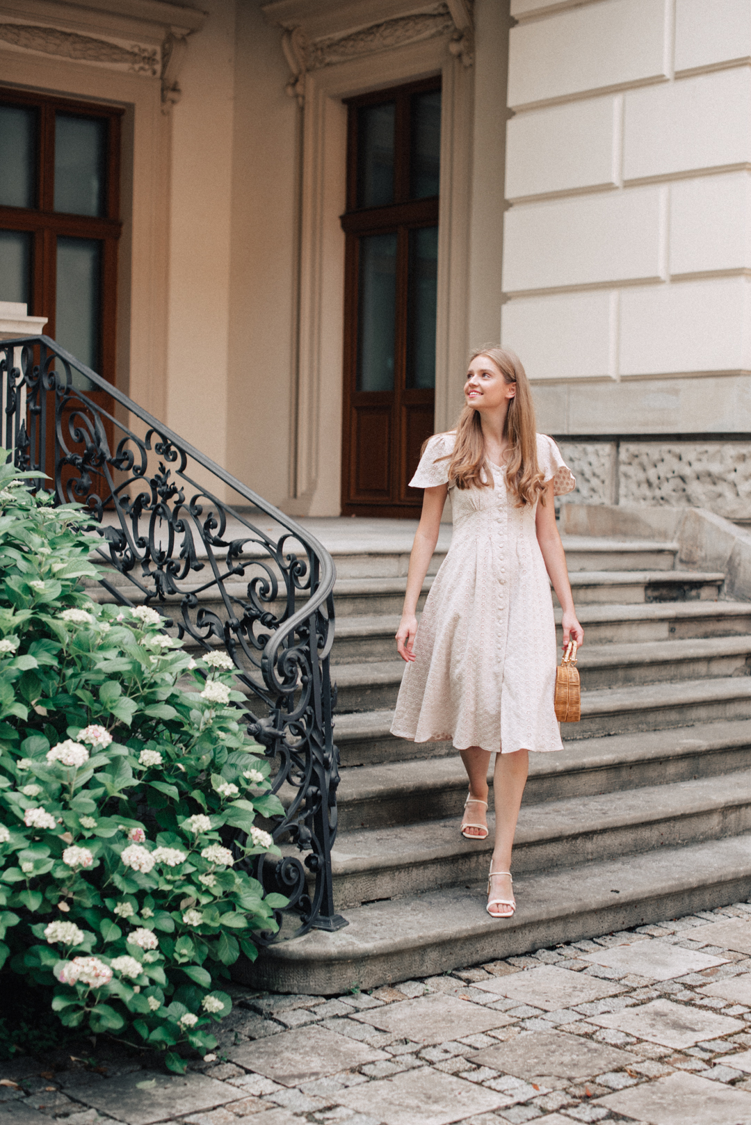 Romantyczna sukienka midi wykonana z haftowanej bawełny, doskonale podkreślająca figurę i zapewniająca swobodę ruchów. Idealna na codzień i eleganckie wyjścia.